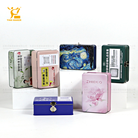 Tinsmaker مخصص مطبوع مستطيل بسعر الجملة OEM ODM صندوق قصدير مفصلات قابل لإعادة التدوير قفل للهدايا