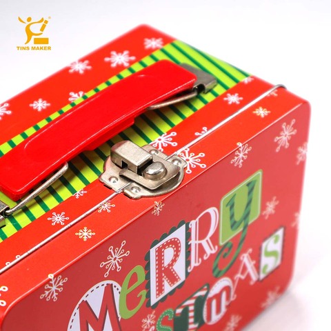 علب هدايا معدنية مخصصة لشجرة عيد الميلاد من القصدير مع قفل ومفتاح لتخزين الشاي والطعام علب صفيح للوصفات