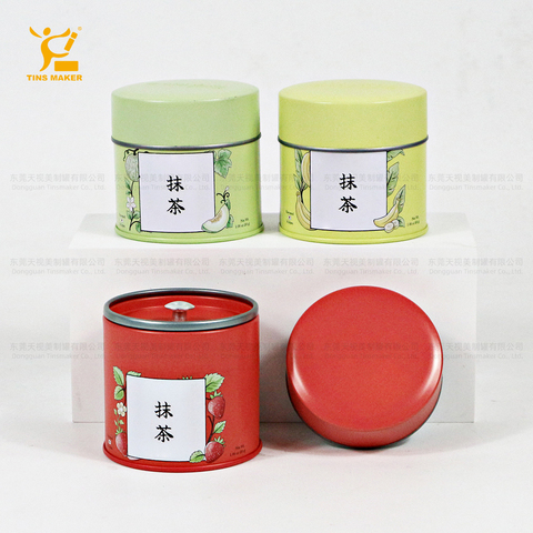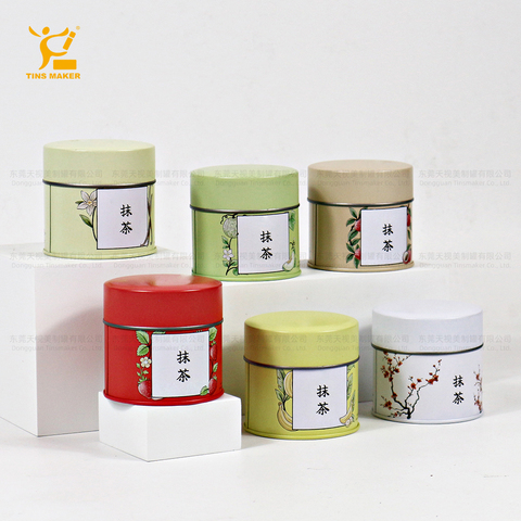 Teneke toptan özel tasarım yuvarlak Matcha teneke gıda sınıfı 30 g 40g 60g Metal boş Matcha çayı kalaylı teneke kutu kutu ambalaj