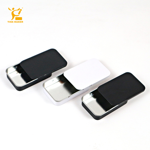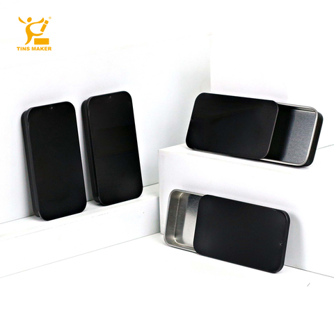 Caixas de metal com tampa deslizante, latas retangulares de folha de flandres pequenas, caixas de metal com tampa deslizante preta